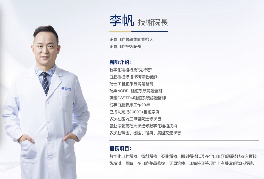 喺我哋口腔連鎖門診度,有位超犀利嘅种植院长,叫做李帆醫生。佢唔單止系口腔醫學集團嘅創辦人,仲系技術上嘅大佬,喺數碼化种植呢方面,佢真係行內嘅開拓者啦!