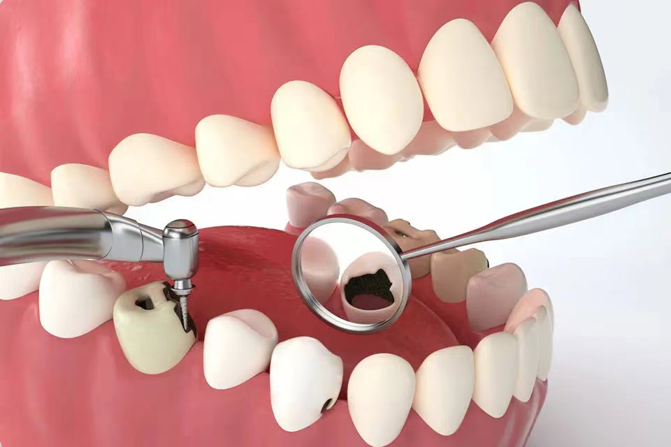 - 使用高速涡轮机或激光等工具,去除牙齿上的腐烂或受损部分,直到只剩下健康、坚固的牙体组织。